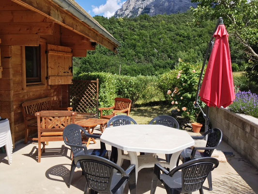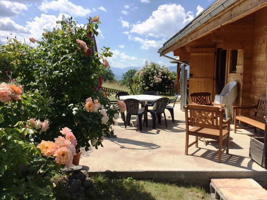 Une terrasse exposée plein sud idéale pour prendre vos repas avec vue sur le Grand Morgon.